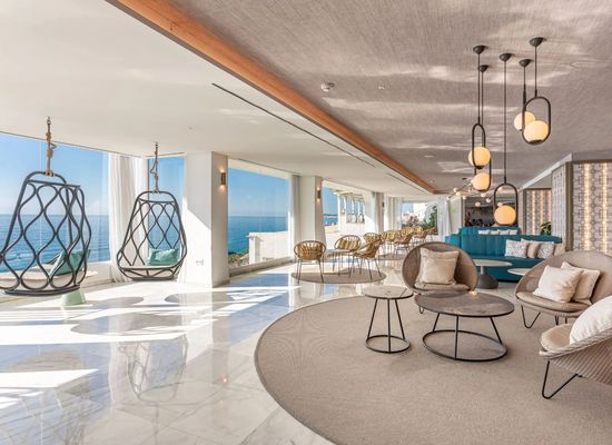 Hotellet har tre restauranger, lobbybar samt en ”rooftop-bar” med hänförande vyer över havet,