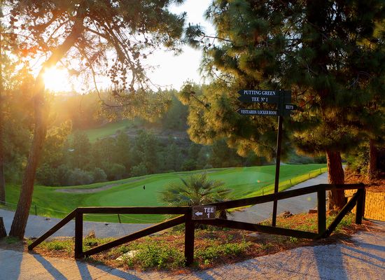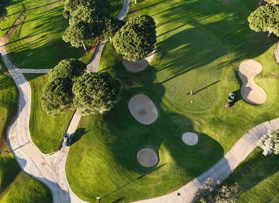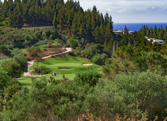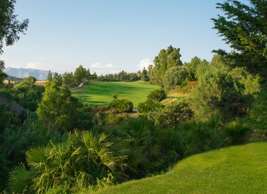 Här möts man av en rätt kuperad bana med böljande fairways inramade av pinjeträd.