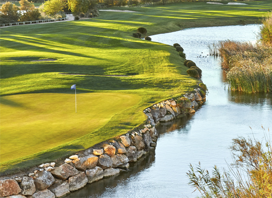 Lakes är en bana av typ ”inland links”, tekniskt utmanande med mycket vatten och gott om bunkrar längs med fairways och runt greenerna. Par 71, 5.934 meter från gul tee och 4.988 meter från röd.