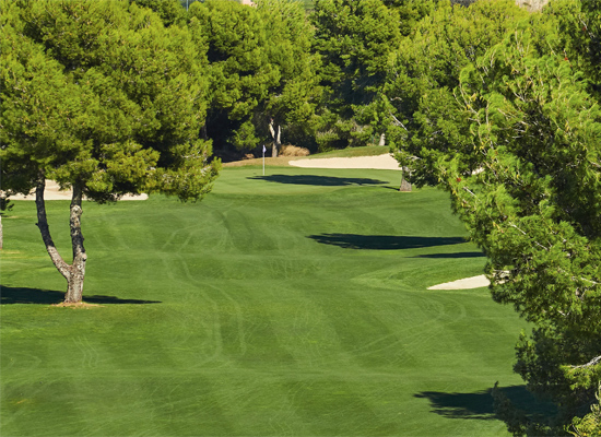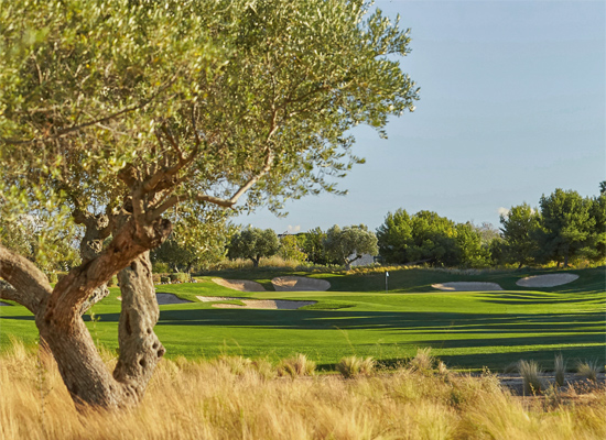 Hills är som namnet antyder den lite mer kuperade av de två artonhålsbanorna med fairways kantade av skog och spektakulära vyer över medelhavet från några av hålen. Par 72, 5.982 meter från gul tee och 4.931 meter från röd.
