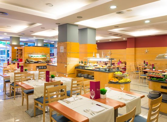 Man har har två restauranger samt bar. Bufférestaurangen Tosca med tillhörande uteservering serverar lunch samt middag kvällstid där menyn varieras med olika teman. I restaurang Desayuno serveras den digra frukostbuffén. Under säsong har man även en pool-bar som förutom drycker även serverar smårätter.