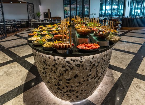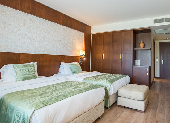 Hotellet har 86 rum belägna i separata byggnader bredvid klubbhuset. Standardrummen är fullt utrustade med a/c, minibar, värdeskåp, satellit-TC, internet mm. Här finns utomhuspool, gym och spa med jacuzzi, bastu mm.Måltider