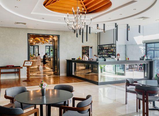 Den historiska staden Kyrenia ligger 20 minuter från Korineum dit hotellet har en gratis buss som går flera gånger om dagen.